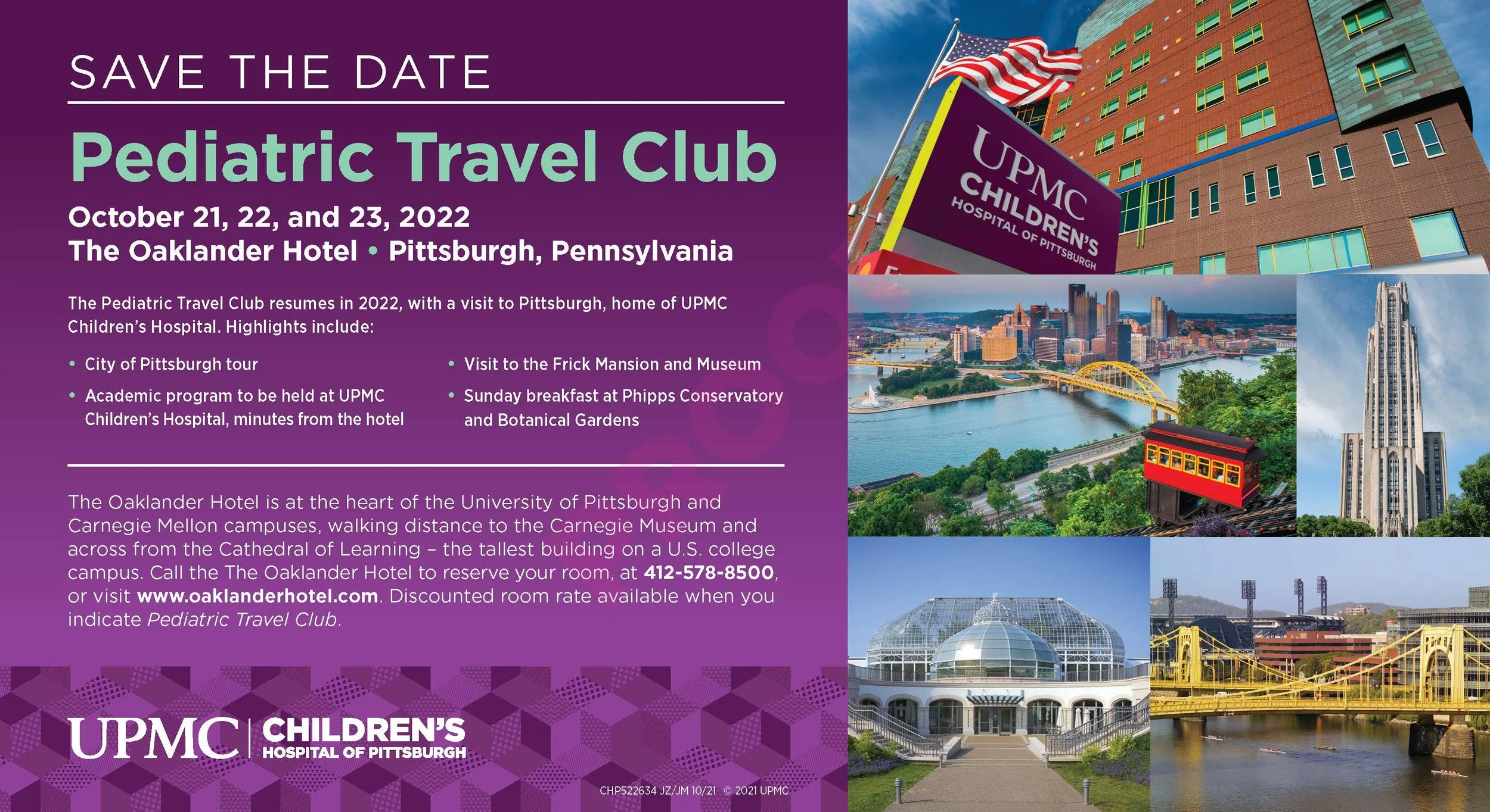 5:30 - 8:30 pm: Early evening Pediatric Travel Club reception at The Oaklander Hotel