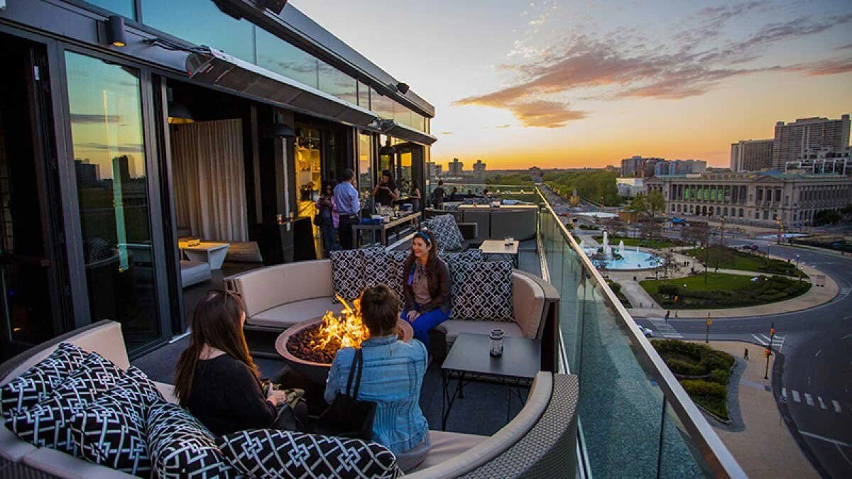 Logan Hotel’s rooftop bar offers a dramatic view of the Benjamin Franklin Parkway an a nice place for a cocktail on a beautiful September evening.